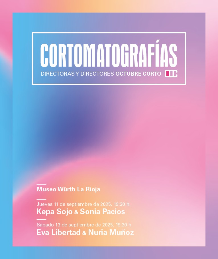 El Museo Würth La Rioja presenta una nueva edición de Cortomatografías en colaboración con el Festival Octubre Corto. Para esta edición hemos invitado a los directores Kepa Sojo y Eva Libertad junto a sus productores Sonia Pacios y Nuria Muñoz respectivamente. Sus obras, reconocidas en festivales nacionales e internacionales, ofrecen una mirada crítica, sensible y diversa sobre la sociedad contemporánea. Eva Libertad y Nuria Muñoz han ganado el último festival de Málaga con el largometraje “Sorda” después de pasar por la Berlinale 2025, y Kepa Sojo y Sonia Pacios son, además de cineastas, gestores culturales y verdaderas autoridades en historia del cine español.