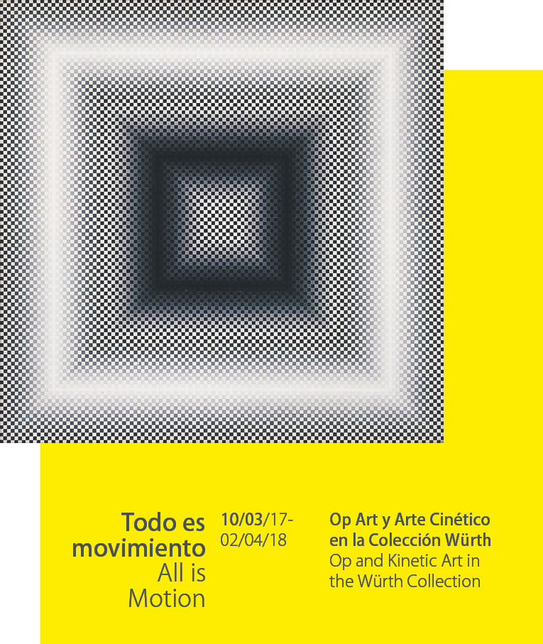 Todo es movimiento, Op Art y Arte Cinético en la Colección Würth se acerca a estas dos corrientes artísticas que están íntimamente relacionadas desde su concepción y que experimentaron un desarrollo simultáneo desde principios del siglo XX. A ellas se suma el desarrollo del arte lumínico que introdujo el uso de la luz eléctrica en el ámbito artístico. La exposición muestra 76 obras de entre 1921 y 2013 de 31 artistas de la Colección Würth, muchos de los cuales fueron protagonistas absolutos en la concepción y desarrollo de estos movimientos. El discurso expositivo explora las diferentes investigaciones formales y metodológicas (forma, color, espacio, perspectiva, luz) en torno al movimiento que fueron desarrollados por los artistas con una decidida vocación universal, por ello en su “Manifiesto Amarillo” de 1955 Vasarely afirmaba que “el arte del mañana será un patrimonio común o no será.”