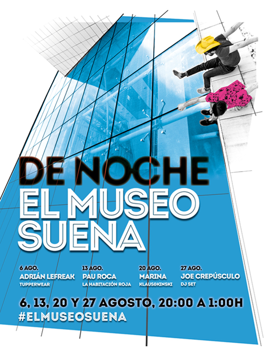 Programación Cultural/2014 La música y las artes plásticas comparten lenguaje, tono, ritmo, expresión. Ambas se nutren del azar y la velocidad tanto como de la serenidad y la reflexión. Ambas suponen juego, movimiento, color, símbolo, descubrimiento, palabra, belleza, explosión. Ambas se ajustan este agosto en nuestros espacios, enredándose y vibrando porque cada miércoles, de noche, el museo suena... Esta cuarta edición del festival tendrá como artistas de nuestras noches, a DJ’s que ya cuentan con una consolidada presencia en el panorama musical indie de nuestro país. Abriremos con Adrián LeFreak (Tupperwear Club, Madrid) el día 6 de agosto; el 13, será el turno del estilo mucho más eléctrico de Pau Roca (La habitación Roja) a quien seguirá, el 20 de agosto, el ecléctico estilo de Marina (Klaus&Kinski). Finalmente, el día 27 de agosto, el polifacético Joe Crepúsculo tomará el control de los platos para cerrar esta edición con una sesión que se adivina especialmente inspiradora. |